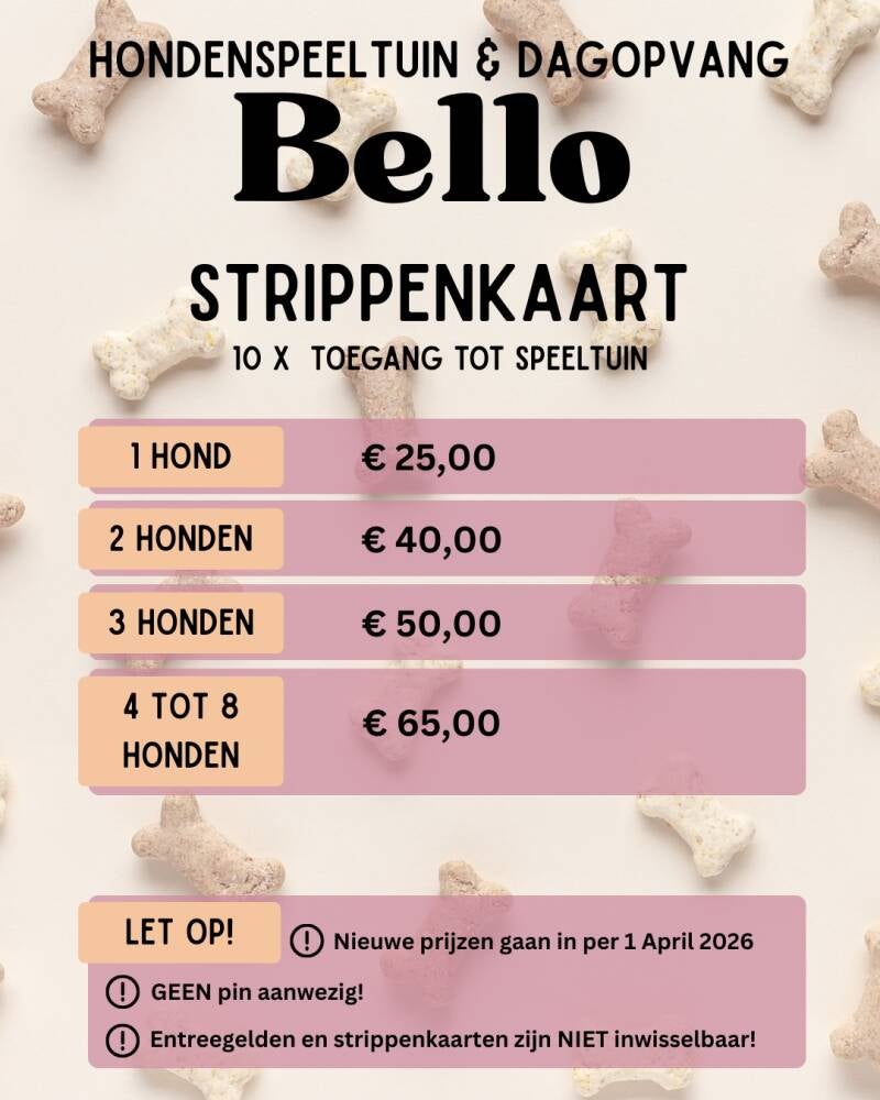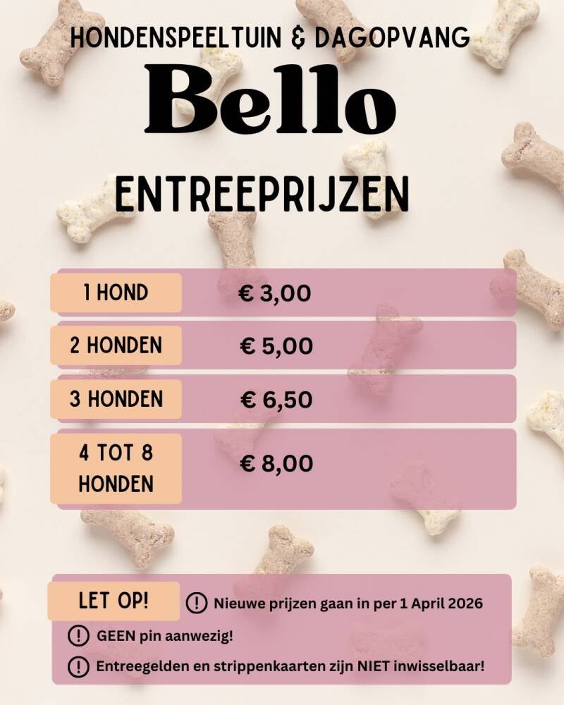 - Hele bange honden, groter dan 40 cm, mogen na overleg met de medewerkers van Bello ook bij het kleine hondenuurtje.